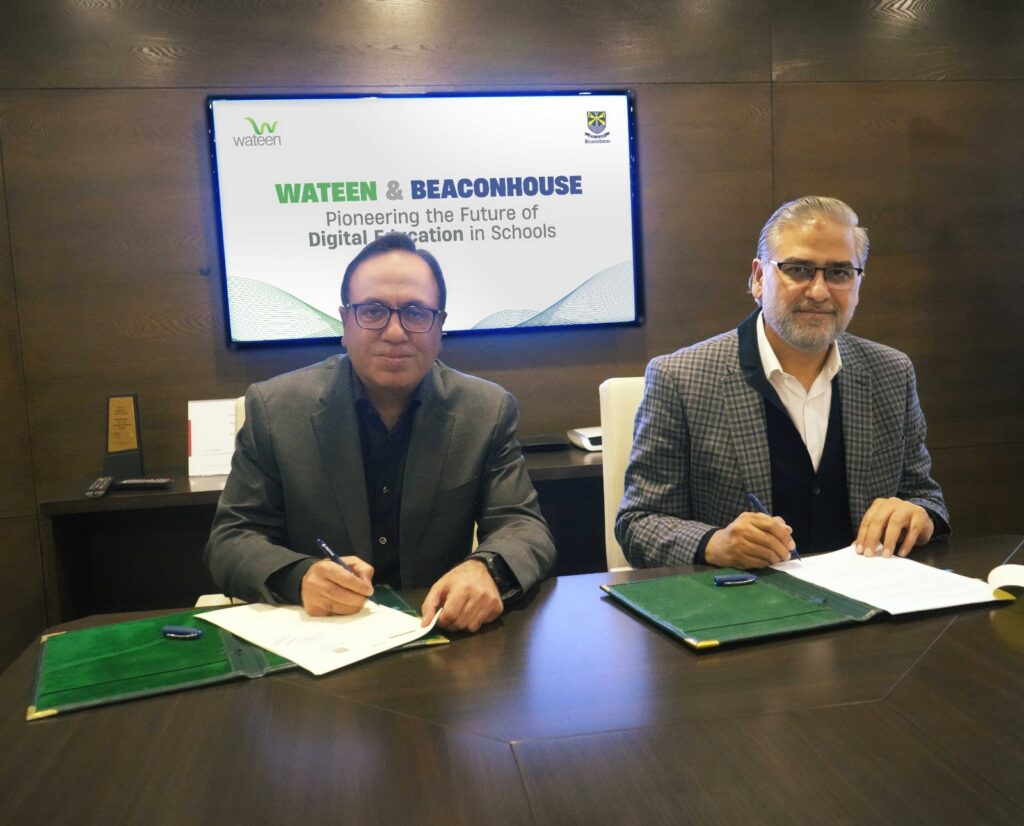 The agreement was signed by Mr. Ali Ahmad Khan, Chief Operating Officer, Beaconhouse, and Mr. Adil Rashid, CEO, Wateen Telecom.